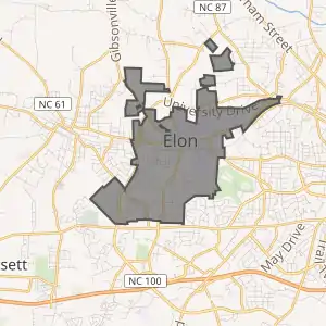 - "صفحة إلون (كارولاينا الشمالية) في خريطة الشارع المفتوحة". OpenStreetMap. اطلع عليه بتاريخ 6 مارس 2021. الوسيط