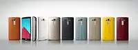 في يناير عام 2014، أعلنت إل جي عن إصدار أمريكي لهاتف إل جي جي2، في معرض الإلكترونيات الاستهلاكية.[36] في عام 2015، أصدرت إل جي أجهزة إل جي جي4 العالمية في أواخر مايو وحتى أوائل يونيو.[37] في 7 سبتمبر عام 2016، كشفت إل جي الحجاب عن V20 وتم الإعلان عن V30 في 31 أغسطس 2017 في ملتقى عالم الهاتف النقال.[38] تم الإعلان رسميًا عن إل جي جي6 في 26 فبراير 2017.[39] تم تحديد موعد تقديم طراز G7 ThinQ في إحاطة إعلامية أخرى في 2 مايو 2018.[40]