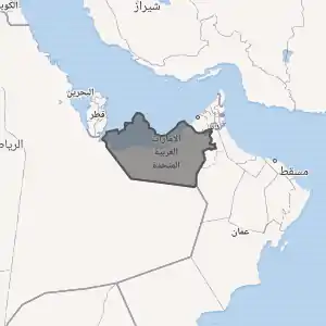 ![]() موقع أبوظبي في الإمارات العربية المتحدة، مع المناطق | |||