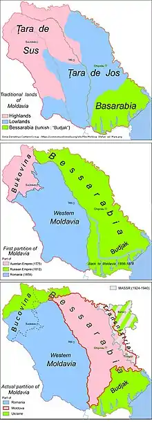 شملت البغدان في أوقات مختلفة مناطق بيسارابيا (مع بودجاك)، وكل من بوكوفينا وهيرتزا. كانت منطقة بوكوتيا أيضًا جزءًا منها لفترة من الزمن.