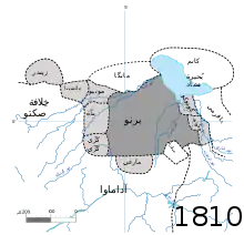 في هذا الوقت تقريبًا، تمكن الشعب الفولاني الذين كانوا يغزون من ناحية الغرب، من تحقيق تقدم كبير وصولاً إلى برنو. ومع بدايات القرن التاسع عشر، كانت إمبراطورية كانم-برنو آخذة في الانهيار، وفي عام 1808، تمكن مقاتلو الفولاني من احتلال نجازار جامو. وقاد عثمان دان فوديو رغبة الفولاني وأعلنت الحرب المقدسة (حرب الفولاني) ضد من زعمت المملكة أنهم من المسلمين غير الملتزمين في المنطقة. وفي النهاية، أثرت حملاته على إمبراطورية كانم-برنو وقد أثار اتجاهًا نحو الالتزام بالعقيدة الإسلامية، إلا أن رجل الدين الإسلامي الذي تحول إلى رجل دولة محمد الأمين الكانمي قاوم التقدم الفولاني.