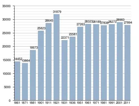 في سنة 1861 بلغ عدد السكان 14٬452 نسمة، وتطور العدد ليصل في سنة 2011 لـ 27٬894 نسمة.