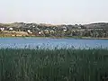 Il canneto di Pergusa in primo piano con uno scorcio del lago sullo sfondo