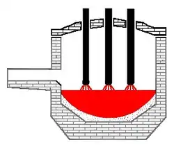 فرن البوتقة هو مرحلة وسيطة بين فرن القوس الكهربي والصب المستمر ويتكون من :