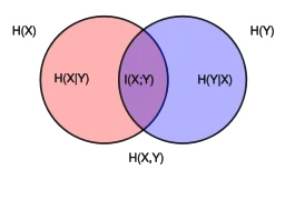 يوضح مخطط فين العلاقات المضافة والطرحية مقاييس المعلومات المختلفة المرتبطة بالمتغيرات المرتبطة و . المنطقة التي تحتوي عليها كلتا الدائرتين هي الانتروبيا المشتركة . الدائرة على اليسار (الأحمر والبنفسجي) هي الإنتروبيا الفردية ، مع انتروبيا الحمراء إنتروبيا مشروطة . الدائرة على اليمين (الأزرق والبنفسجي) ، مع المجال الأزرق . البنفسج هو المعلومات المتبادلة .