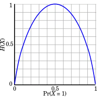 ينتج عن الاحتمال الموحد أقصى قدر من عدم اليقين وبالتالي أقصى انتروبيا. الإنتروبيا، إذن، يمكن أن تنخفض فقط من القيمة المرتبطة بالاحتمال المنتظم. الحالة القصوى هي عملة ذات رأسين لا تظهر ذيولًا أبدًا، أو عملة ذات ذيل مزدوج لا ينتج عنها رأس أبدًا. ثم ليس هناك شك. انتروبي هو صفر: كل رمية للعملة لا تقدم أي معلومات جديدة حيث تكون نتيجة كل رمية للعملة مؤكدة دائمًا.