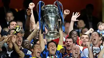 في الدور الربع النهائي، جميع التوقعات كانت تصب لصالح الفريق الذي حقق السداسية التاريخية، نادي برشلونة، لكن الأنتر فاجأهم بفوز صعب في معقلة الـسان سيرو بـنتيجة (3-1) بتوقيع كل من شنايدر ومايكون وميليتو[214][215]، والعودة من معقل الكامب نو بخسارة (0-1) بعد تطبيق المدرب البرتغالي جوزيه مورينهو لخطة الكاتيناشيو،[216] ويضمن التأهل بنتيجة المبارتين (3-2). التقى إنتر ميلان في نهائي مدريد في معقل المدريدين ملعب سانتياغو برنابيو بفريق بايرن ميونخ الألماني وفاز عليه أداءً ونتيجةً بهدفي دييغو ميليتو في الدقيقة 39 والدقيقة 70،[217][218] ليعود اللقب للأنتر بعد 45 سنة من المعاناة وبواسطة المدرب البرتغالي القدير جوزيه مورينهو الذي أعاد البسمة لرئيس الإنتر ماسيمو موراتي وجماهير النيراتزوري.[219][220]