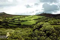 تُعرف جبال بينينز بالعمود الفقري لإنجلترا، وهي أقدم سلسلة جبال في البلاد، والتي تكونت في نهاية الحقبة البالوزية منذ حوالي 300 مليون سنة مضت.[92] يصل الطول الإجمالي للبينينز إلى 400 كم، وتبلغ ذروتها في كروس فيل في [[كامبريا (ويلز)|كامبريا}}.[90] وتتألف من مواد هي في معظمها من الحجر الرملي والحجر الجيري، وأيضا من الفحم الحجري. وهناك تكوينات كارستية في المناطق الكالسية في أجزاء من يوركشاير وديربيشير.[90] وهي تحتوي على ثلاث محميات[؟] طبيعية. ويبلغ ارتفاع أعلى نقطة في إنجلترا 978 م، وهي قمة سكافيل في كامبريا[؟].[90] على جانبي الحدود بين إنجلترا واسكتلندا تقع تلال شفيوت. كما تنتشر السهول جنوب بينينز، وهي خضراء خصبة، تشمل سهول كوتسوولدز، وسهول شيلتيرن وشمال وجنوب داونز، وتلتقي هذه السهول جميعها عند صخرة بيضاء ظاهرة متمثلة في منحدرات دوفر الواقعة على الساحل.[90] تشكل تلال شفيوت ونهر تويد حدود إنجلترا مع اسكتلندا.