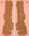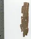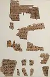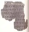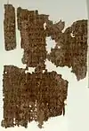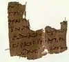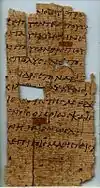 ![]() بردية 52 وهي أقدم نسخة معروفة عن إنجيل يوحنا، تعود لحوالي عام 125م. بردية 52 وهي أقدم نسخة معروفة عن إنجيل يوحنا، تعود لحوالي عام 125م. | |