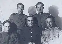 | ...الأولي:كان ذو نشاط حزبي في أكاديمية لينين، والثانية: صراعه القوي في مجال العمل كعامل في بناء المترو والذي قد قدم الجهد البطولي العظبم والقدرة الإبداعية لدى الطبقة الكادحة بقيادة أيديولوجية الطليعة للحزب الشيوعي، والثالثة: سخر فيها روحه وجسده لخدمة الحزب في الأكاديمية العسكرية فرونزي والتي من خلالها يُقَدم شهادة رسمية...[7]. |