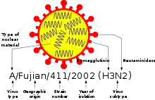 فيروس الأنفلونزا حسب تصنيف الفيروسات عبارة عن فيروس حمض نووي ريبوزي يتشكل من خمسة أجناس من عائلة الفيروسات المخاطية القويمة.[33]