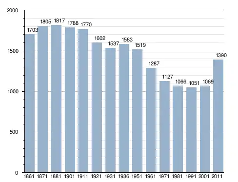 في سنة 1861 بلغ عدد السكان 1٬703 نسمة، وتطور العدد ليصل في سنة 2011 لـ 1٬390 نسمة.
