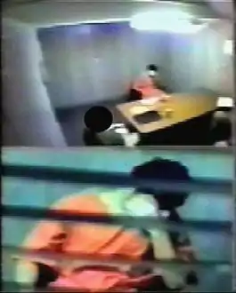 Working from seven hours of recently declassified tapes, the Montreal-based filmmakers Luc Côté and Patricio Henriquez have assembled an even-tempered glimpse behind a very dark curtain. What we see is a blurry, black-streaked box, the faces of Mr. Khadr's Canadian interrogators hidden behind cartoonish smudges. This gives them a disturbingly jaunty look as they fiddle with an asthmatic air-conditioner and proffer cartons of fast food, their fake bonhomie soon descending into psychological cruelty.