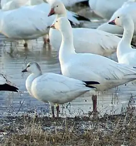 ![]() أوز روز يافعة أو غير ناضجة ( تشن ROSSII ، لليسار) الناضجة أوز الثلج الخفيف ( C. caerulescens caerulescens) | |