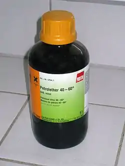 إيثر بترول Petroleum ether هو مستخرج من النفط ، كربوهيدرات أليفاتية تتميز بخفتها و درجة غليان بين 35 و 60 درجة مئوية ، تستخدم بصفة خاصة في المختبرات والمعامل كمذيب. [1] تسمية إيثر تشير إلى خفة تلك المواد وسهولة تطايرهالا، حيث درجة غليانها تكون منخفضة.