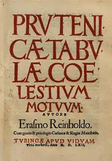 إيراسموس رينهولد (بالألمانية: Erasmus Reinhold) (و. 1511 – 1553 م)[5] هو رياضياتي، وعالم فلك[6]، وأستاذ جامعي من ألمانيا. ولد في زالفلد.[7][8] توفي في زالفلد[7]، عن عمر يناهز 42 عاماً.[9]