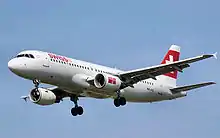 | A319 | محركان، وممر واحد، تقصير 3.77 متر من إيرباص إيه 320 | 124 | 156 | يونيو 1993 | 25 أغسطس 1995 | أبريل 1996 الخطوط الجوية السويسرية |