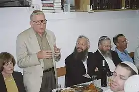 ![]() د. موسكوفيتش في اجتماع لعدد من الإسرائيليين في منطقة جبل الزيتون في فلسطين | |