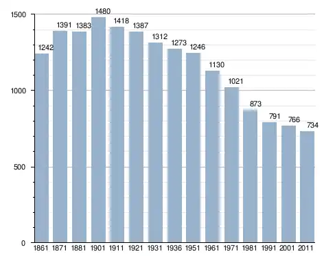 في سنة 1861 بلغ عدد السكان 1٬242 نسمة، وتطور العدد ليصل في سنة 2011 لـ 734 نسمة.