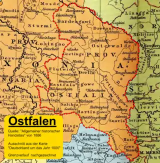 كانت الأراضي الإيستفالية في سلسلة جبال هارز هي الأراضي الوراثية لهنري فاولر، أول دوق ساكسوني أصبح ملكًا للرومان في عام 919، وأحفاده من السلالة أوتونية. لقد تركوا العديد من الأديرة والقلاع الرومانسكية، وهو مشهد ثقافي يشمل اليوم ثلاثة مواقع للتراث العالمي مع مدينتي جوسلار وكيدلينبرج القروسطيتين، بالإضافة إلى كاتدرائية سانت ماري وكنيسة سانت مايكل في هيلدسهايم. نظرًا لأن أراضي إيستفاليا تحدها أراضي السلاف البولابين خلف نهري إلبه وزاله، فقد أصبحت نقطة البداية لـ التوسع الألماني الشرقي، الذي بدأ بغزوات الملك هنري واستمرت من قبل المارجرافات الساكسونية.