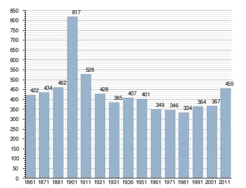 في سنة 1861 بلغ عدد السكان 422 نسمة، وتطور العدد ليصل في سنة 2011 لـ 455 نسمة.