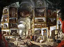 تأثرت روما أيضًا بشكل خاص بعصر النهضة. حيث غيرت هذه الفترة الإصلاحية من وجه المدينة بشكل كبير مع أعمال مثل بييتا لميكيلانجيلو وجدارية شقة بورجيا. وصلت روما ذروة روعتها تحت حكم البابا يوليوس الثاني (1503-1513) وخلفائه لاون العاشر وكليمنس السابع وكلاهما من عائلة ميديشي. خلال العشرين عامًا هذه، استحالت روما إحدى أكبر المراكز الفنية في العالم. أعيد بناء كاتدرائية القديس بطرس القديمة التي بناها الإمبراطور قسطنطين العظيم بشكل رئيسي من قبل ميكيلانجيلو،[56] الذي أصبح أحد أكثر الرسامين شهرة في إيطاليا من خلال اللوحات الجدارية في الكنيسة النيكولينية وفيلا فارنيسينا وغرف رافائيل بالإضافة إلى العديد من اللوحات الشهيرة الأخرى. بدأ ميكيلانجيلو زخرفة سقف كنيسة سيستينا ونحت تمثال موسى الشهير لضريح يوليوس. خسرت روما في إطار هذه الحملة ولو جزئيًا طابعها الديني لتصبح على نحو متزايد مدينة النهضة الحقيقية بظهور عدد كبير من الأعياد الشعبية وسباقات الخيول والأحزاب والمكائد وحلقات الفجور. ازدهر اقتصادها بوجود العديد من المصرفيين التوسكان بما في ذلك أغوستينو شيجي الذي كان صديقًا لرافائيل وراعيًا للفنون. قبل وفاته المبكرة عزز رافائيل لأول مرة فكرة المحافظة على الآثار القديمة.