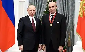 ![]() إيغور كروتوي رفقة الرئيس الروسي فلاديمير بوتين خلال توشيحه بوسام الاستحقاق من الدرجة الثالثة بتاريخ 22 ديسمبر 2014 | |