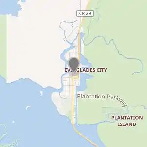 - "صفحة إيفرغليدز سيتي في GeoNames ID". GeoNames ID. اطلع عليه بتاريخ 5 مارس 2021. الوسيط