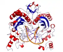 | بنية كريستالية لـEcoRV في مركب مع لولب دنا مزدوج | |