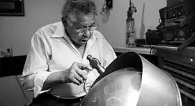 ![]() مانيت خلال صناعته طستًا فولاذيًا | |