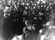 عندما حل ذعر العام 1893 في العام التالي، عانت الولايات المتحدة من أسوأ أزماتها الاقتصادية. وبحلول نهاية العام، كان معدل البطالة أعلى من 20٪,[52] وتحولت "مظاهرات الجوع" في بعض الأحيان إلى أعمال الشغب. بدأت جولدمان بالتحدث إلى حشود الرجال والنساء المحبطين في مدينة نيويورك. وفي 21 أغسطس، تحدثت إلى حشد من حوالي 3000 شخص في ميدان يونيون، حيث شجعت العمال العاطلين عن العمل على اتخاذ إجراءات فورية. لم يكن واضحا ما قالته تماما: عملاء سريون أصروا أنها أمرت الحشد إلى "الاستيلاء على كل شيء ... بالقوة",[53] في حين روت جولدمان في وقت أنها قالت: "حسن إذن، تظاهروا أمام قصور الأغنياء؛ طالبوا بالعمل، وإذا لم يمنحوك عملا، اطلب الخبز. وإذا حرموك من كليهما خذ الخبز."[54] وفي وقت لاحق في المحكمة، عرض المحقق الرقيب تشارلز جاكوبس نسخة أخرى من خطابها.[55]