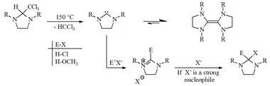 يعطي تفاعل نزع الهيدروجين من الكربون رقم 2 جذر كيميائي كربيني يدعى ثنائي هيدرو إيميدازول-2-يليدين Dihydroimidazol-2-ylidene؛ حيث تشكل مشتقات الأخير العديد من مركبات الكربين المستديمة المقاومة للتفكك؛[6] والتي كان الكيميائي هانز-فيرنر فانتسليك Hans-Werner Wanzlick قد نشر عنها في ستينات القرن العشرين.[7][8][9]