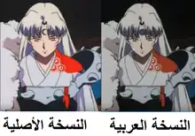 وقاموا بالتضليل كتضليل ساقي كاجومي وأيضا تضليل شعار القمر على جبهة سيشومارو، وأيضا تقطيع بعض المشاهد العارية مثل استحمام سانجو وكاجومي[في أية حلقة؟] وأيضا مشهد عودة كيكيو للحياة[في أية حلقة؟] حيث كانت عارية، وأيضا المشاهد الرومانسية مثل عناق انوياشا وكاجومي[في أية حلقة؟] وتقبيل كيكيو لإنوياشا[في أية حلقة؟]، وتحريف بعض النصوص