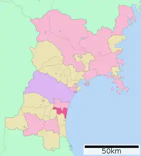 | (باليابانية: 岩沼町) (باليابانية: 岩沼市) | ||