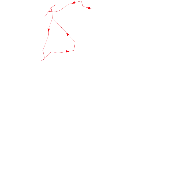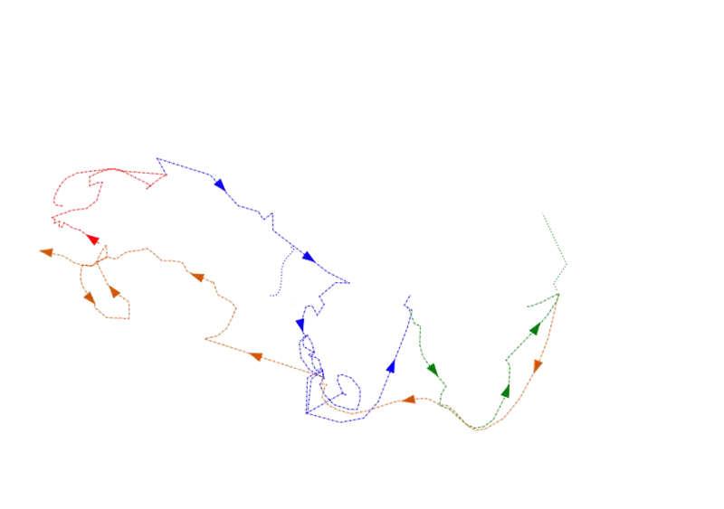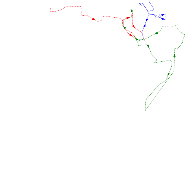 خط سير رحلة ابن بطوطة بين عامي 1325 و1332 (بلاد المغرب، العراق، بلاد فارس، شبه الجزيرة العربية، الصومال والساحل الشرقي لإفريقيا).