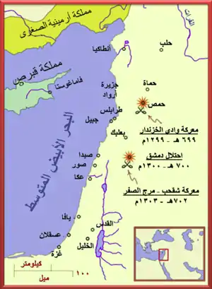 وصلت الأخبار إلى الشام سنة 702 هـ بعزم التتار على دخولها ووصولهم إليها، ومسيرهم إلى دمشق. وفي 18 شعبان قدمت طائفة كبيرة من جيش المصريين ثم قدمت بعدهم طائفة أخرى. وجلس القضاة بالجامع وحلفوا جماعة من الفقهاء والعامة على القتال. وتوجه ابن تيمية إلى العسكر الواصل من حماة، فاجتمع بهم في القطيفة، فأعلمهم بتحالف الأمراء والناس على لقاء العدو، فأجابوه وحلفوا معهم، وكان ابن تيمية يحلف للأمراء والناس: إنكم في هذه الكرة منصورون، فيقول له الأمراء: قل إن شاء الله، فيقول: إن شاء الله تحقيقاً لا تعليقاً.[20]:23