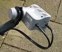 - محول خفض الضوضاء المنخفض (LNB) - هذا هو عنصر الاستقبال في الجهاز. تتمثل مهمة LNB في تضخيم إشارة راديو القمر الصناعي المستقبلة التي ترتد من الطبق وتصفية الضوضاء، وهي أي إشارة لا تحمل معلومات صحيحة. يمرر LNB الإشارة المضخمة والمرشحة إلى مودم القمر الصناعي في موقع المستخدم.