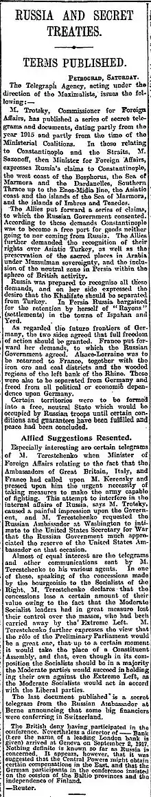 |CitationClass=تم تجاهله (مساعدة) - Proceedings of the Brest-Litovsk Peace Conference: the peace negotiations between Russia and the Central Powers 21 November, 1917-3 March, 1918, Page 40. Government Print Office Washington. 1918. مؤرشف من الأصل في 16 ديسمبر 2019. الوسيط