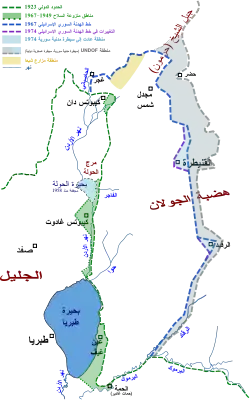 - ستكون القوات العسكرية الإسرائيلية كلها غربي الخط المشار إليه بالخط (أ) على الخريطة المرفقة بهذه الوثيقة، إلا في منطقة القنيطرة حيث ستكون غربي الخط (أ-1).