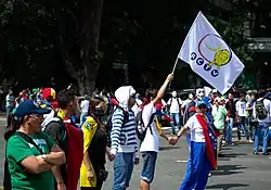 - 14 فبراير / شباط - احتج الطلاب على منظمة الدول الأمريكية في فنزويلا مطالبين باتخاذ إجراءات ضد العنف.[41] أغلق المتظاهرون المعارضون شارع فرانسيسكو دي ميراندا في كراكاس طالبين بإطلاق سراح الطلاب الذين ألقي القبض عليهم في 12 فبراير، وقام الحرس الوطني في فنزويلا بتفريق المتظاهرين مع الغاز المسيل للدموع في ألتاميرة، وطالبت المائدة المستديرة للوحدة الديمقراطية والمؤتمر الأسقفي الفنزويلي بنزع سلاح الكولكتيفات والجماعات المسلحة الموالية للحكومة، وأدان منتدى العقوبات الفنزويلي (فيروبيان فينزولانو) أن الشرطة الوطنية البوليفارية (PNB) البراهين حول استخدام الأسلحة النارية ضد المتظاهرين في باركيسيميتو لتجنب التجريم.[42][43][44][45][46]