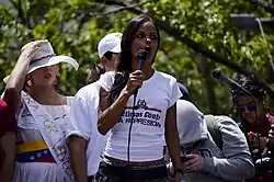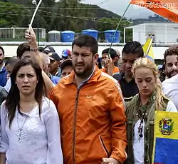 - 27 فبراير - احتج الطلاب الذين يقودهم خوان ريكيسنس ضد العنف والاحتجاز والتعذيب للطلاب في فنزويلا، مع زيارة هيريك كابريلز، ولكنه لم يكن متحدث رسمي.[116] أصدرت الحكومة مذكرة توقيف لكارلوس فيشيو، زعيم الإرادة الشعبية بتهم مختلفة.[117] احتج أطباء في ماراكاي، ولاية أراغوا، على حالة المستشفيات في الولاية.[118] وقد أصدر الرئيس مادورو مرسوما بتاريخ 27 شباط / فبراير بعنوان "يوم عدم العمل في فنزويلا" فيما يتعلق بسقوط الاحتجاجات (وكان ذلك التاريخ أيضا الذكرى السنوية الخامسة والعشرين لتاريخ كاراكازو التاريخي لعام 1989).[119]