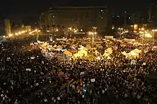 ![]() متظاهرون في ميدان التحرير في القاهرة صباح يوم 27 نوفمبر 2012. | |