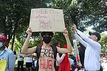 ارتدى العديد من المتظاهرين اللون الأحمر، المرتبط بالرابطة الوطنية من أجل الديمقراطية.[5] أعادت حركة العصيان المدني إحياء أغنية «العالم لم ينتهِ بعد» التي نُشرت لأول مرة كنشيد لانتفاضة 8888، واستخدمتها كأغنية احتجاجية.[6][7][8] تبنى المتظاهرون التحية الثلاثية الأصابع على نطاق واسع كرمز للاحتجاج،[9] بينما انضم بعض مستخدمي الإنترنت المؤيدين للديمقراطية إلى تحالف الشاي بالحليب، وهي حركة تضامن ديمقراطية عبر الإنترنت في آسيا.[10]