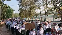 |CitationClass=تم تجاهله (مساعدة) - "Teachers, students join anti-coup campaign as hospital staff stop work". Frontier Myanmar. 3 February 2021. مؤرشف من الأصل في 19 فبراير 2021. اطلع عليه بتاريخ 03 فبراير 2021. الوسيط