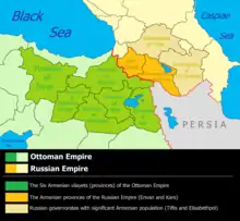 ![]() منطقة الاحتلال الروسي لأرمينيا الغربية في صيف 1916 (خريطة روسية). |