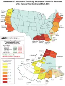 U.S. Department of the Interior, (MMS) (2006). "Assessment of Undiscovered Technically Recoverable Oil and Gas Resources of the Nation's Outer Continental Shelf, 2006" (PDF). Minerals Management Service. مؤرشف من الأصل (PDF) في 1 يوليو 2010. اطلع عليه بتاريخ 16 أغسطس 2008. الوسيط