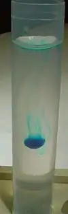يملأ أنبوب الاختبار بالماء المقطّر ويضاف له حمض الخليك. ثم يضاف إلى هذا الخليط قطرة واحدة من سائل الانصباب.