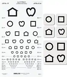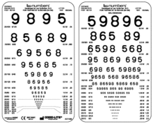 يعتبر الاختبار الثاني في الترتيب الذي استحدث بعد اختبار الأشكال "لي". يمكن من خلال هذا الاختبار قياس حدة النظر للأطفال والبالغين. تصميم هذا الاختبار يشبه إلى حد ما اختبار جدول "سنلن" التقليدي المستخدم في قياس حدة النظر. في هذا الاختبار يتم تصغير حجم خطوط الأرقام من أعلى إلى أسفل الصفحة لكي يقوم الطفل بقراءة أصغر خط ممكن.