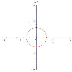 في الشكل إلى اليسار أختير معامل الاختلاف المركزي يساوي e=1