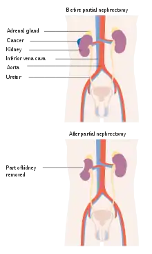 يتم إجراء استئصال الكلى الجزئي عند وجود ورم في حالات الكلية المفردة، أو وجود ورم في كلا الكليتين، أو كان استئصال الكلية بالكامل يمكن أن يسبب فشل كلوي للأخرى، والحاجة إلى غسيل كلوي.